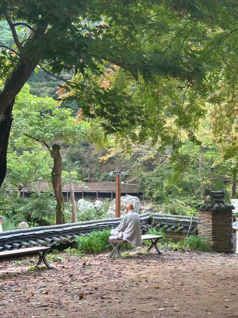 Follow the wooden trail behind the institute and you’ll reach Mago-sa Temple. The path is lined with trees, wind, birds, and the soothing sound of a stream. Many visitors share the same impression: